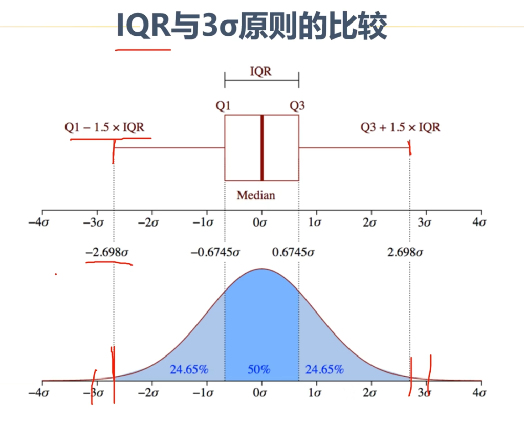 可以看出IQR的区间较小,能剔除更多的异常值,更为严格。