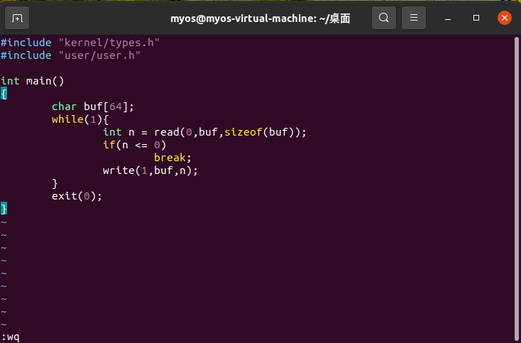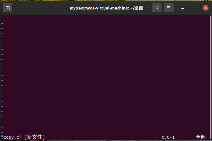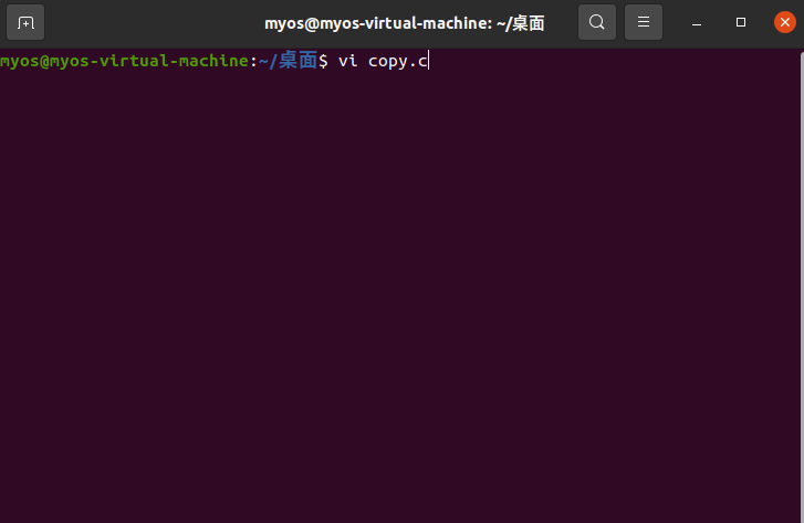 按下enter后,系统就会自动在桌面创建一个copy.c文件,并且终端会进入vi的命令模式,如下图。