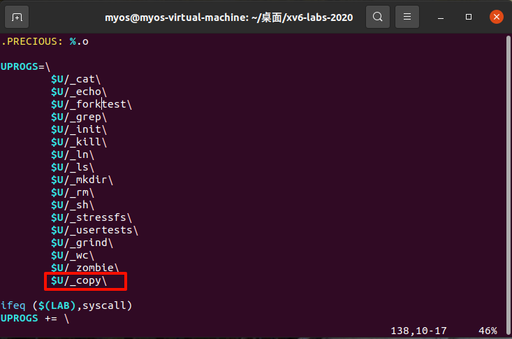 为了让xv6帮我们一起编译文件,光把文件“给它”还不行,我们要通过修改它的“待编译清单”来“告知它”我们的需求。