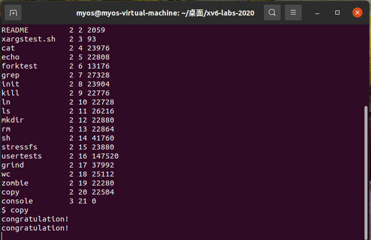 随后,我们就可以仿照课程中老师的操作,直接输入copy即可调用我们的copy程序: