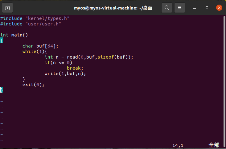 由于xv6系统本身并没有编译器的实现,所以我们需要把程序在编译系统时一并编译,因此,我们需要在xv6系统的编译文件夹中加入我们的copy.c文件。对于不同人的主机,xv6系统存储的位置各不相同,所以我们应该把待编译的.c文件创建在正确的相对位置。
